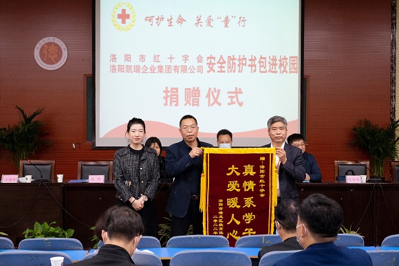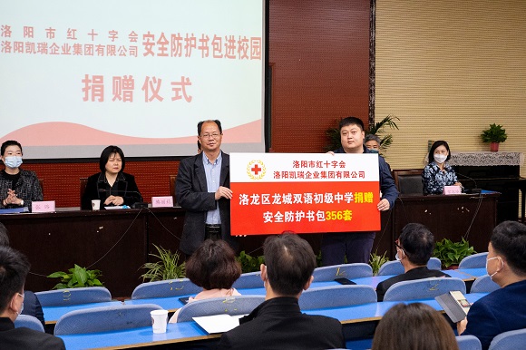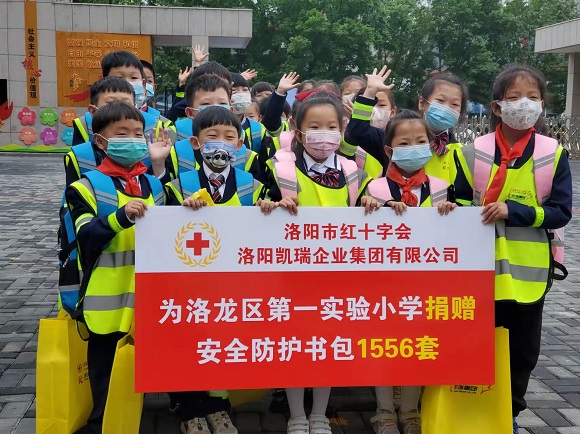 2022年4月12日,洛陽紅十字會攜手洛陽凱瑞企業(yè)集團開展“呵護生命關愛童行——安全防護書包進校園”活動,由凱瑞集團向洛龍區(qū)轄區(qū)內部分學校捐贈總價值超35萬余元安全防護書包。安全防護書包捐贈發(fā)放儀式在定鼎門小學舉辦。市紅十字會常務副會長王少俠先生、洛龍區(qū)人大副主任韓麗莉女士、洛陽凱瑞企業(yè)集團代表任品先生、張璐女士及其他轄區(qū)內相關學校領導、教職員工代表出席本次捐贈儀式,儀式由洛龍區(qū)教育局副局長王繼軍先生主持。